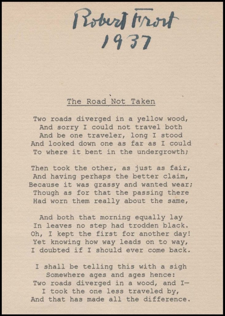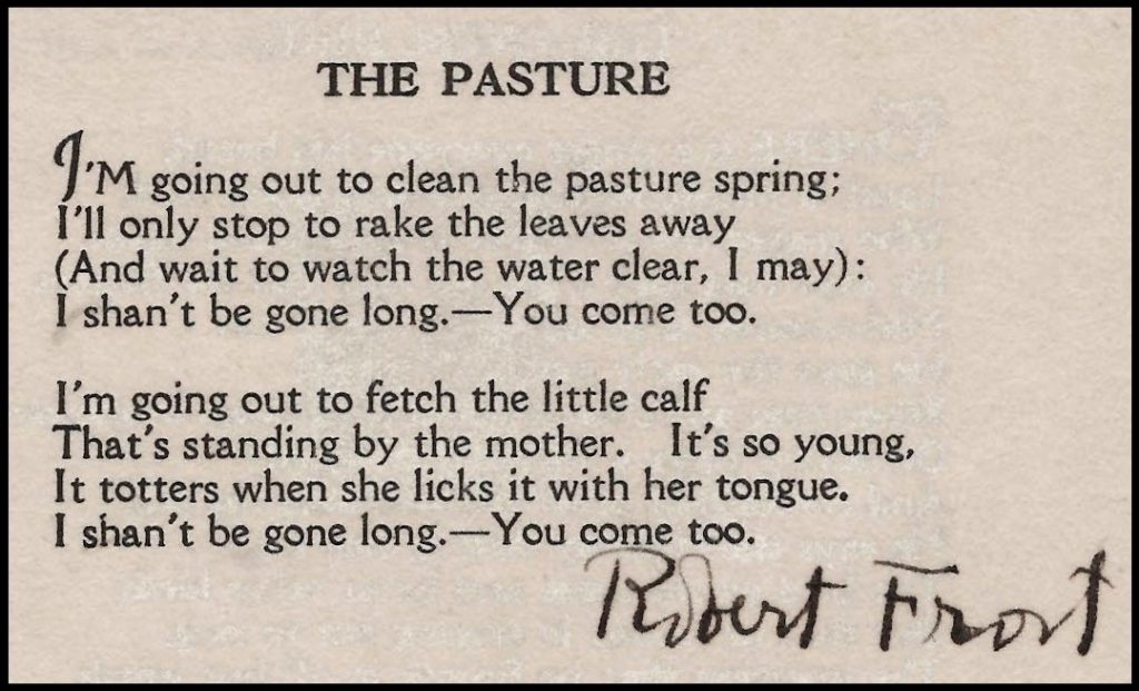 And there’s the middle-aged man with a boy’s will. Frost was nearly forty years old before his first collection of poetry (A Boy’s Will, 1913) was published. Despite this late start, he would get to enjoy half a century of increasing and, eventually, unequalled fame and recognition.