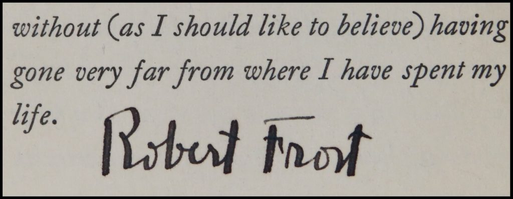Assembling the trove of Robert Frost material in this catalogue was the work of decades. Herein, 71 items signed or inscribed by Frost, spanning his first to his final published work – including nearly three quarters of the bibliographer’s “A” list1 of his books and pamphlets published during his lifetime. And, of course, more besides, including signed letters, Christmas cards, manuscript and souvenir poems, and even a legal document.